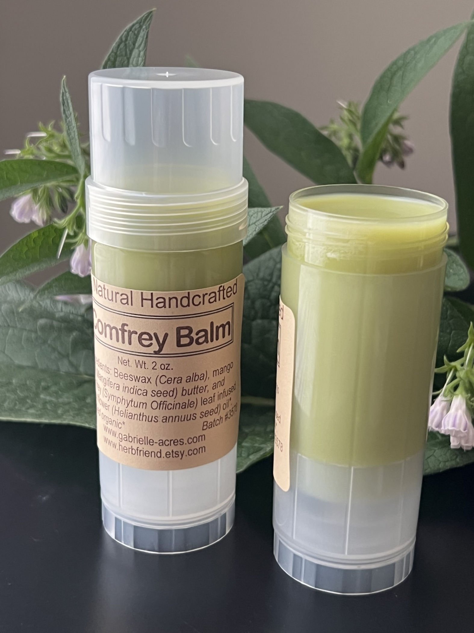 My Comfrey Balm is made to capture the soothing essence of Comfrey (Symphytum officinale). COMFREY (Symphytum officinale) is a plant, which has been used in folk medicine and widely cultivated in medicinal herb gardens. It has a long history in folk medicine and is sometimes referred to as knit bone.