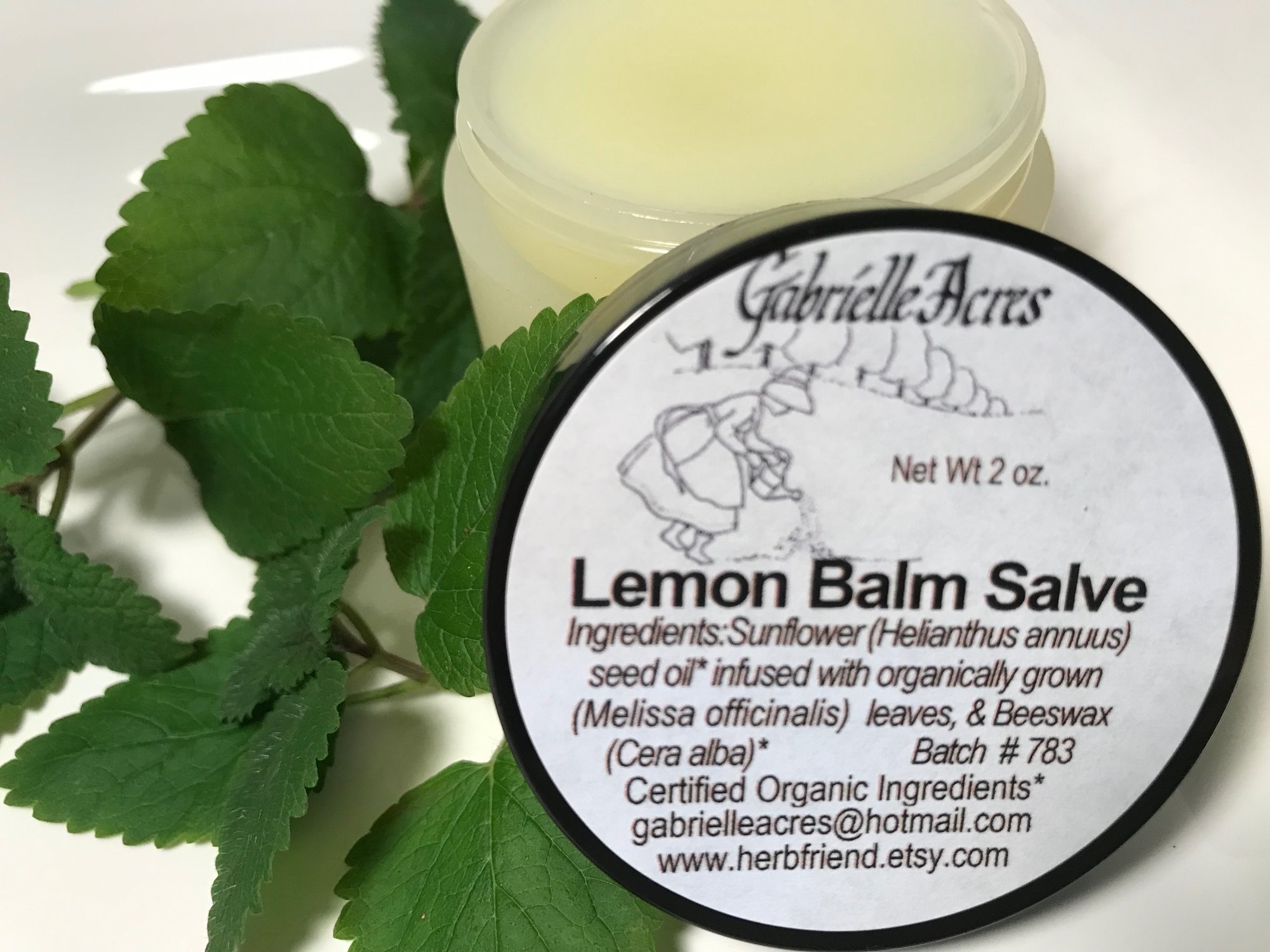 Lemon Balm Salve, Melissa Officinalis Salve, made with organic ingredients. This listing is for one two-ounce glass jar of lemon balm salve.