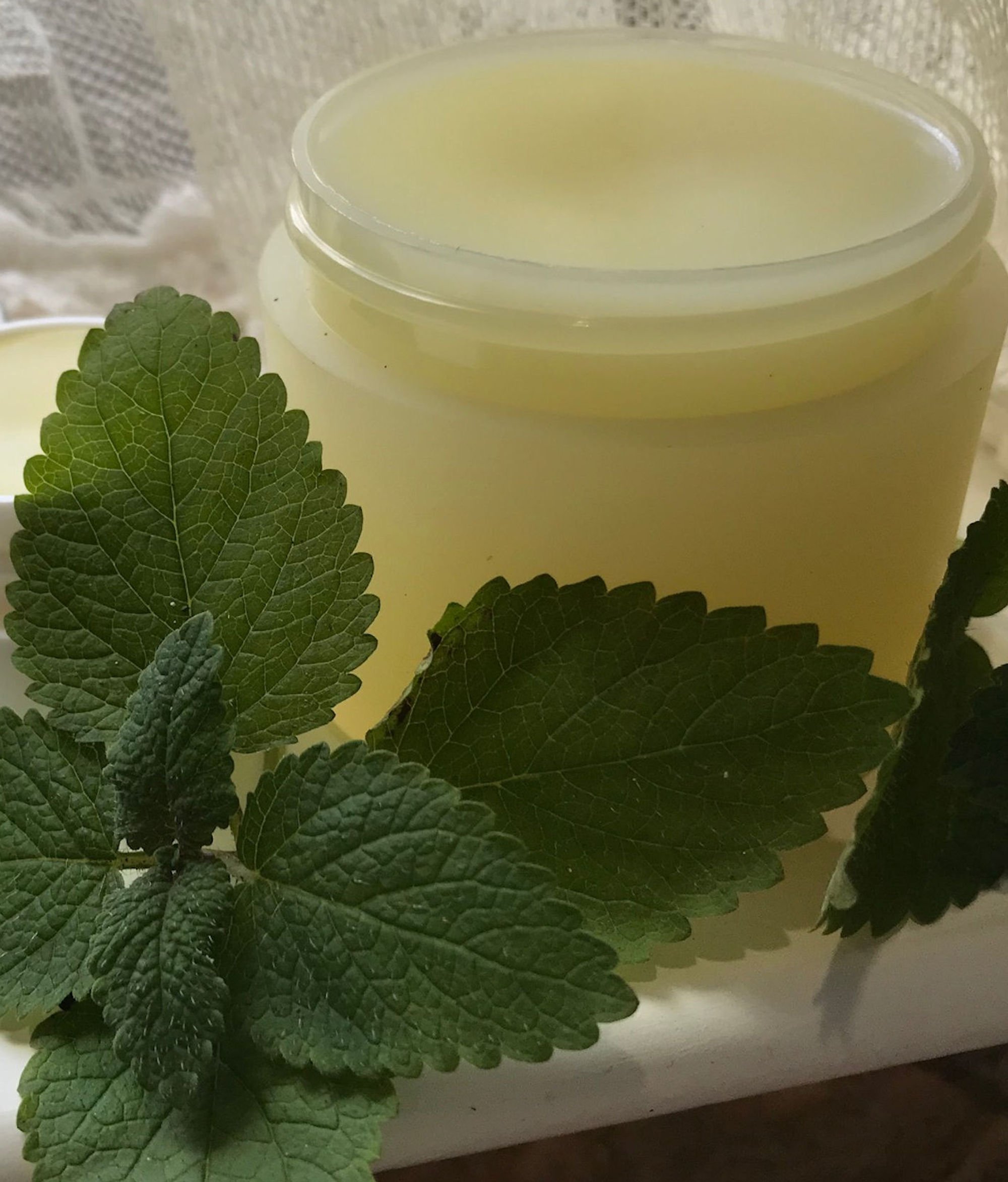 Lemon Balm Salve, 2 oz Glass Jar, Unscented Melissa Infusion Balm