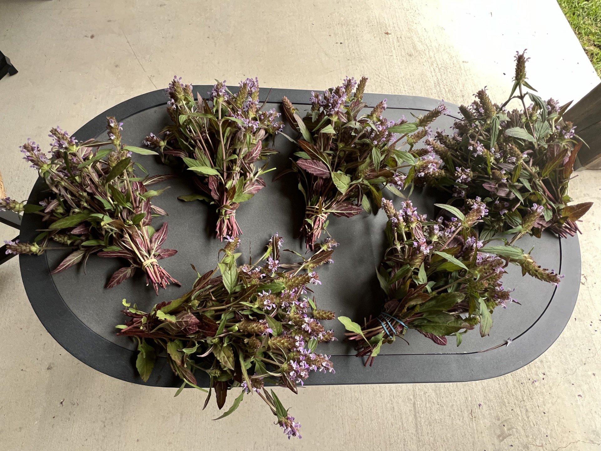 The plants are loved and growing wild on our country property. They flower during the months of March and April, here in South Louisiana. My daughter and grandchildren often picnic and help me harvest the flowers during these sunny and cool days. We bring the self heal harvest home and tie them in bunches and hang them to gently dry. I make the herbal oil and then turn that into a freshly made self-heal salve to fill my customer's order.